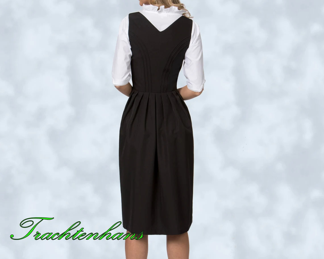 Das klassische Dirndl aus einem hochwertigen, pflegeleichten Stoff besticht mit vielen liebevollen Details. Das Mieder ist mit handgearbeiteten Reliefverzierungen veredelt. Die klassischen Miederhaken sind mit einem Kettenverschluss versehen. Der ideale Kombipartner für alle trendigen und traditionellen Schürzen.