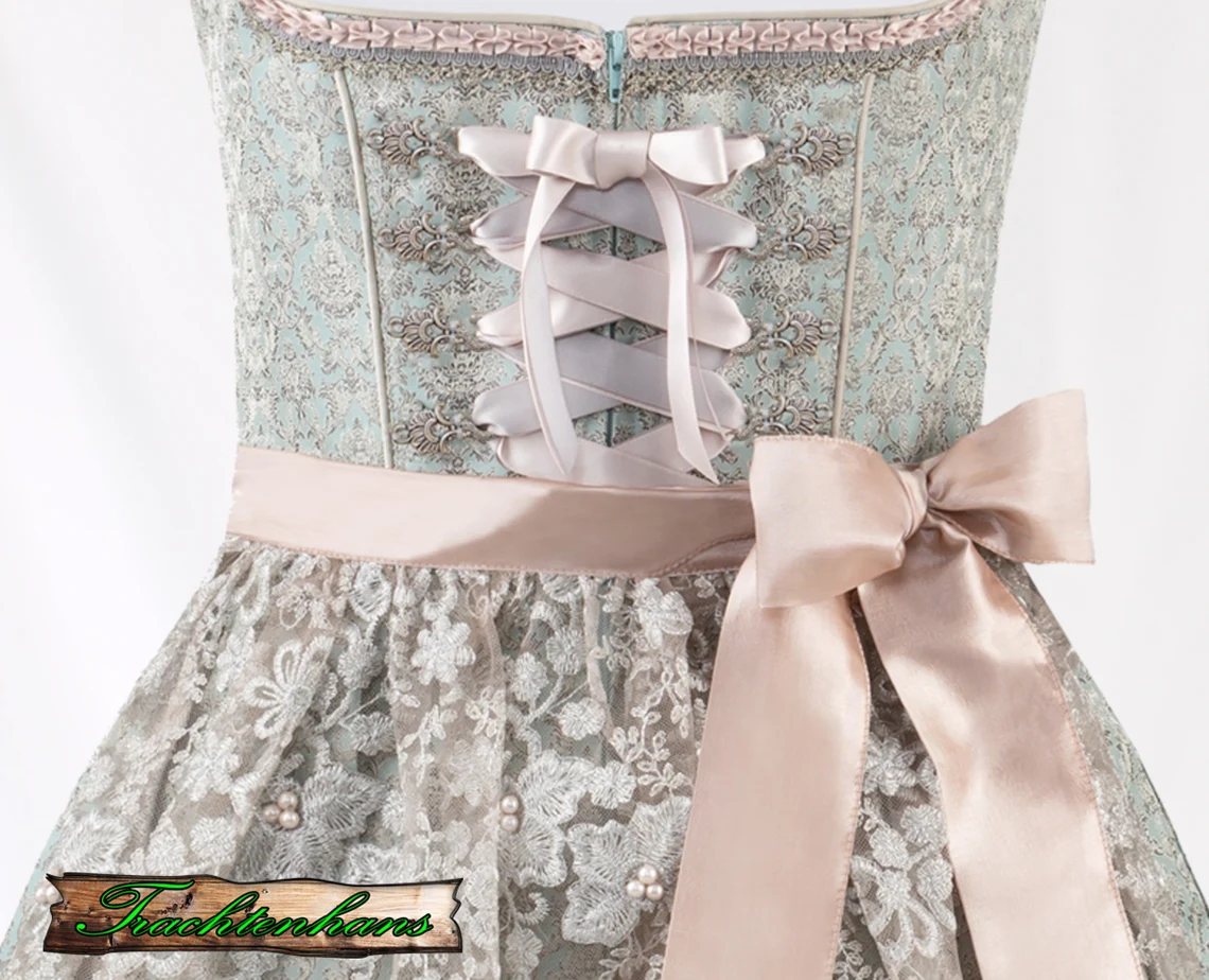 Das Kleid besteht aus einem taupefarbenen Rockteil und einem hellgrünen Oberteil mit floralem Muster. Der Ausschnitt ist herzförmig geschnitten und verleiht dem Kleid eine romantische Note. Die Schürze in Mint setzt einen schönen Kontrast zum Rest des Kleides und rundet den Look perfekt ab. Aber nicht nur optisch kann das Dirndlkleid mint-taupe punkten. Auch in Sachen Tragekomfort lässt es keine Wünsche offen. Der Stoff ist angenehm weich und bietet genügend Bewegungsfreiheit beim Tanzen oder Feiern. Das Dirndlkleid mint-taupe ist ein Traum in Grün und Taupe. Es vereint Tradition und Moderne auf perfekte Weise und lässt euch garantiert zum Star auf jedem Volksfest werden.