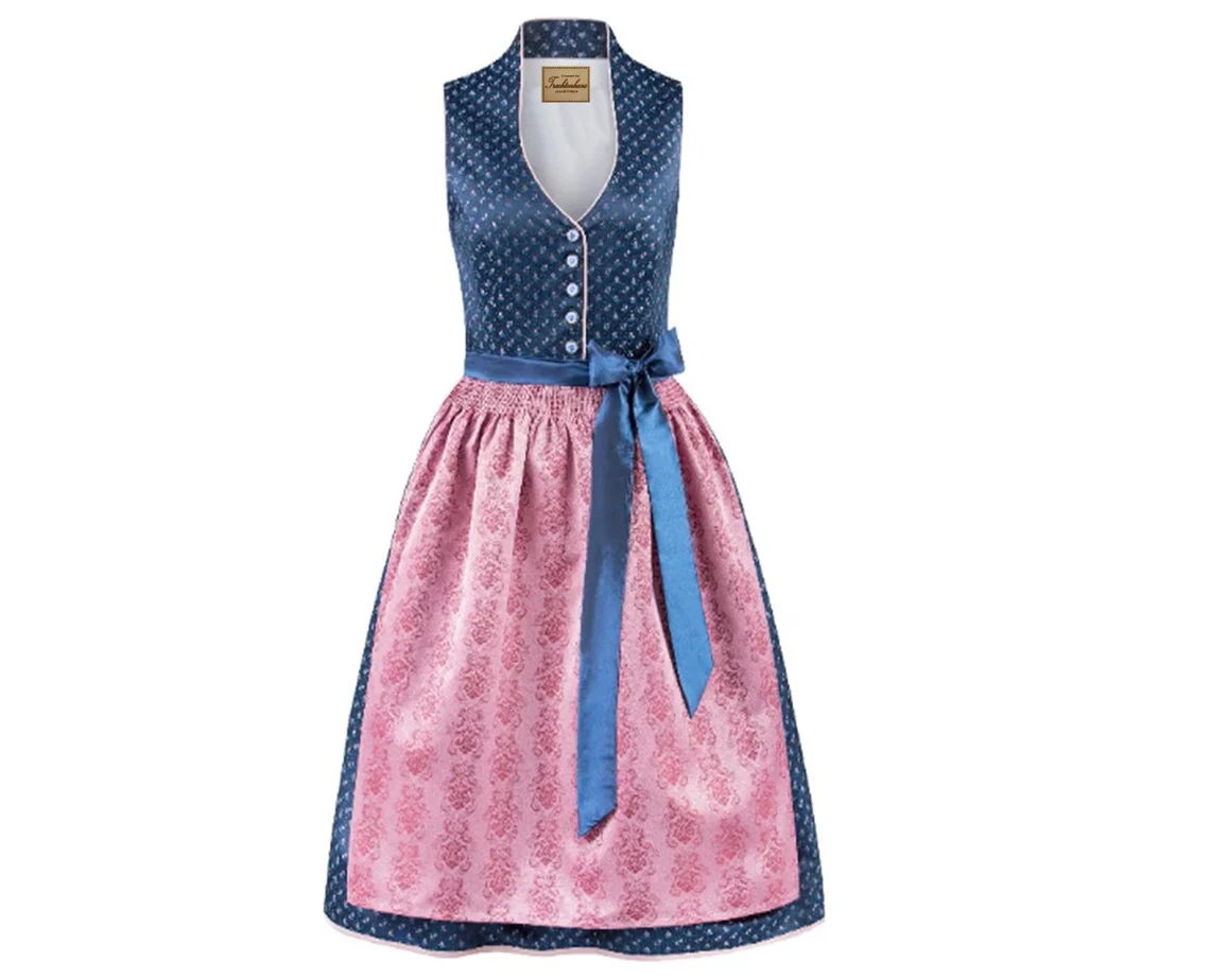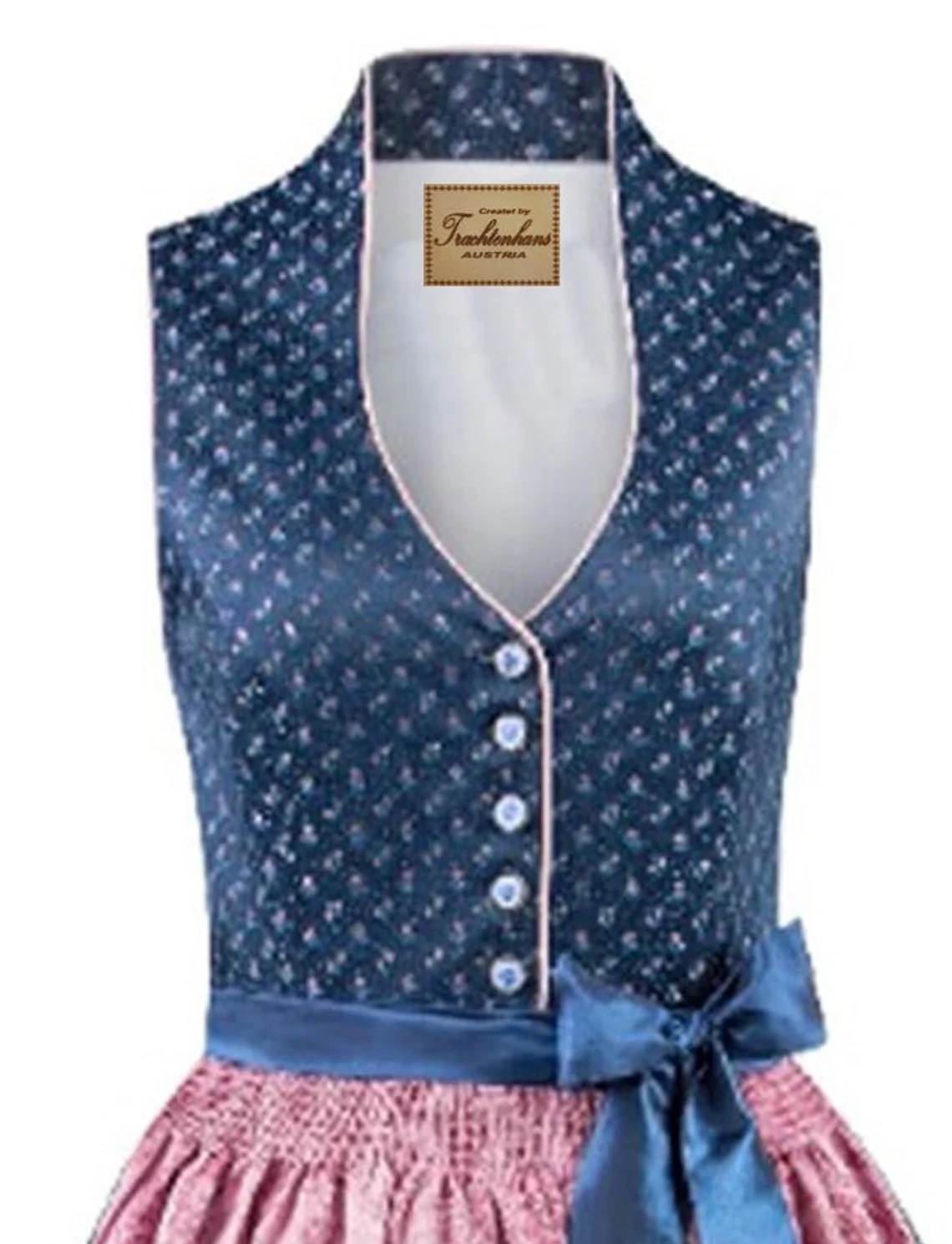 Das traditionelle Dirndl überzeugt durch die hochwertige Verarbeitung. Das Schalkragenmieder unterstreicht das Dekolleté vorteilhaft. Für die feminine Note sorgen die mit kleinen Blumen verzierten Trachtenknöpfe. Bis ins Detail ausgearbeitet, rundet die Dirndlschürze mit farblich abgestimmtem Bindeband das Modell formvollendet ab.