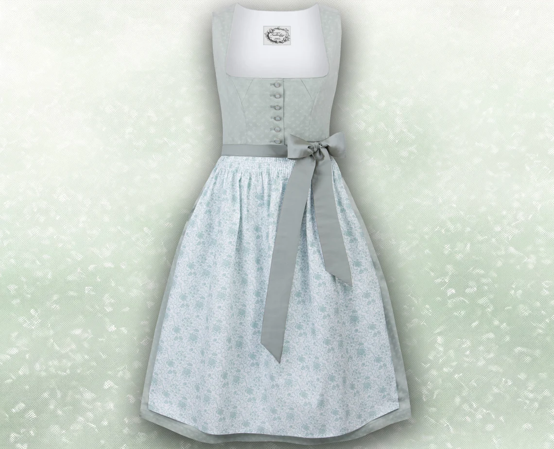 Die farblich abgestimmte Schürze rundet die feminine Passform des Dirndls perfekt ab und verleiht dem Outfit eine harmonische Gesamterscheinung. Mit seinem zeitlosen Design und seiner eleganten Ausstrahlung ist dieses Dirndl die ideale Wahl für festliche Anlässe, traditionelle Feierlichkeiten oder einen Besuch auf dem Oktoberfest. Ein Must-Have für jede Trachtenliebhaberin.